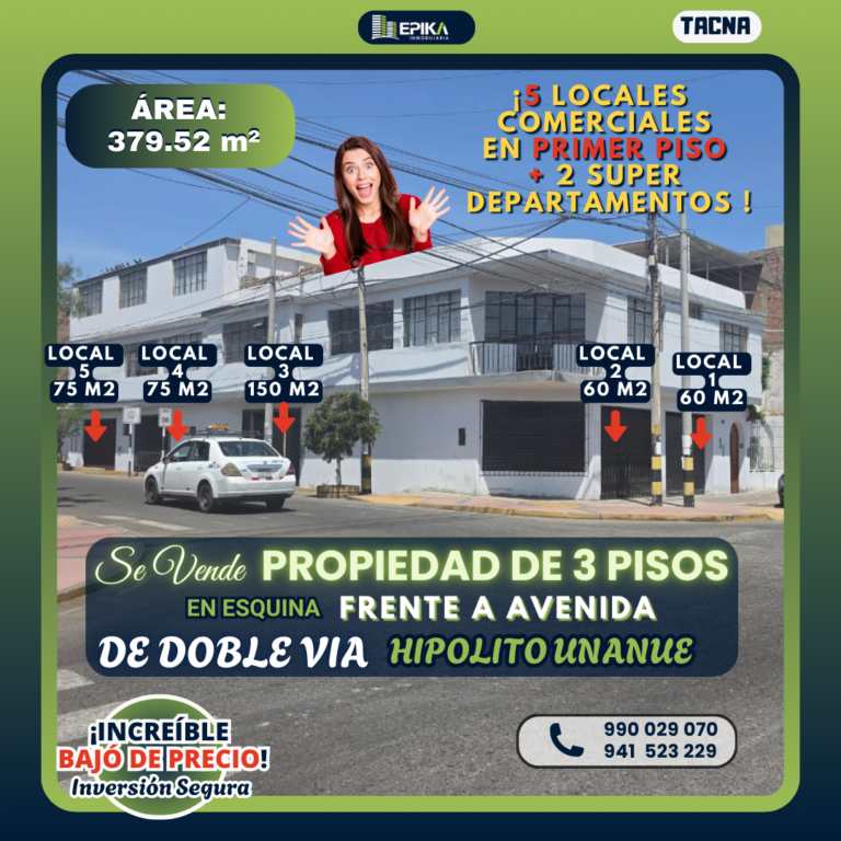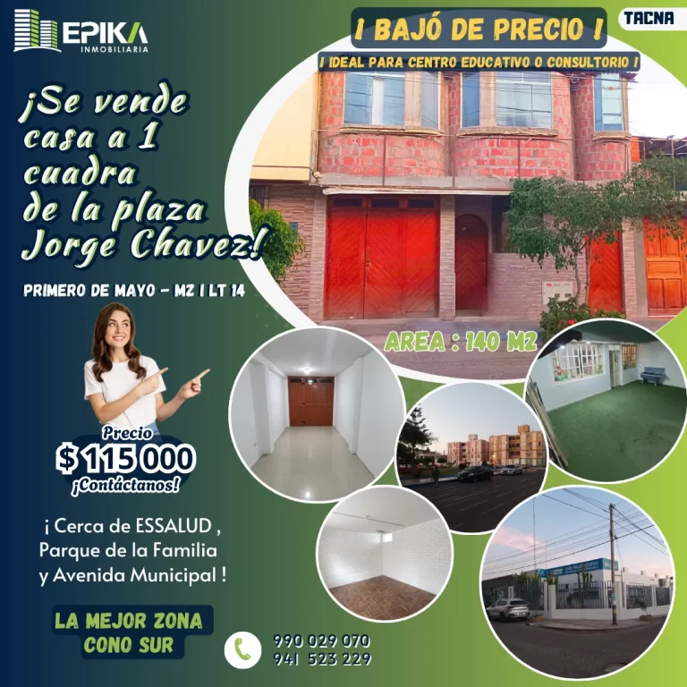 - Ubicado en zona céntrica a 2 cuadras de Plaza Vea - Tacna.
