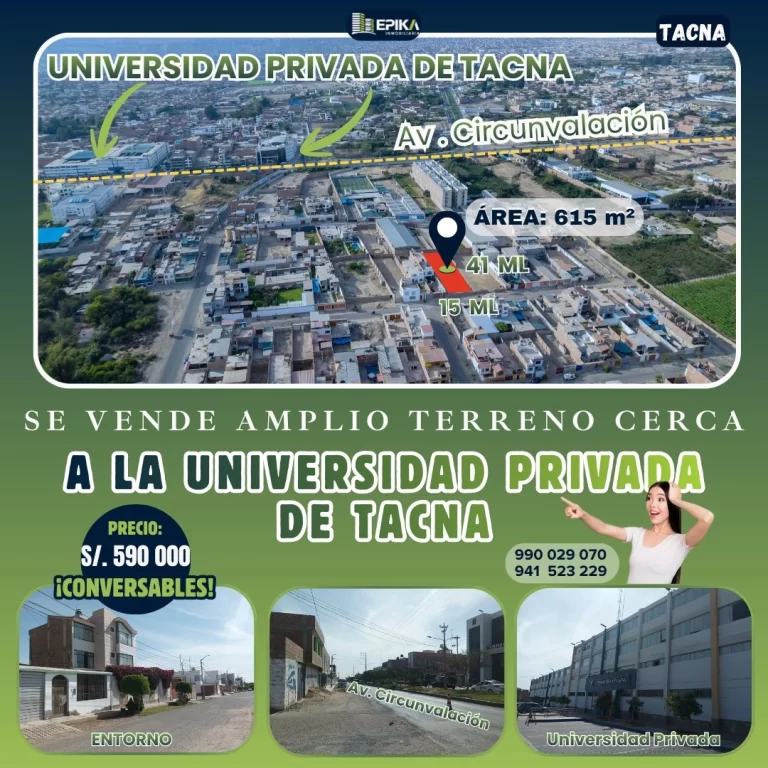 - Villa Universitaria – Tacna. A 2 cuadras de la Universidad Privada de Tacna. Cerca de la Av. Circunvalación